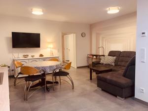 Apartament oferuje taras, sypialnię, salon z TV, łazienkę z prysznicem oraz kuchnię z lodówką i zmywarką. Obiekt Apartment am Engelsblick - die Eifel direkt vor der Tür oferuje widok na ogród. Ręczniki i pościel są dostępne w apartamencie Apartment am Engelsblick - die Eifel direkt vor der Tür.