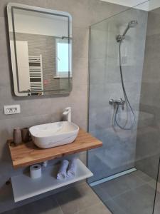 Questo appartamento con aria condizionata comprende 2 camere da letto, un soggiorno, una cucina con utensili, lavastoviglie e bollitore elettrico, e 2 bagni con doccia e asciugacapelli. Asciugamani e lenzuola sono inclusi nei servizi di Apartment Andric Premium.