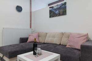 Featuring a private entrance, this air-conditioned apartment consists of 1 living room, 2 separate bedrooms and 1 bathroom with a shower and a bidet. Guests will find a stovetop, a refrigerator, kitchenware and an oven in the well-fitted kitchen. The apartment also offers a barbecue. The apartment provides a flat-screen TV with cable channels, a seating area, a dining area, a wardrobe as well as mountain views. The unit offers 3 beds.
