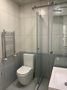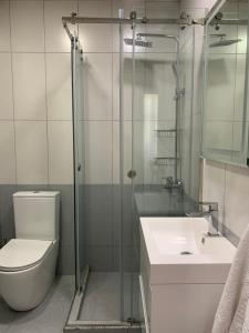 Das apartment close to Republic squre umfasst ein Schlafzimmer, eine Küche mit Kühlschrank und Geschirrspüler, einen Flachbild-TV, einen Sitzbereich und ein Bad mit Dusche.