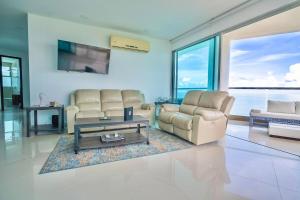 Apartment facing the sea with a panoramic view si trova a Cartagena de Indias e offre una vasca idromassaggio. Con aria condizionata, l'alloggio è a 400 metri da Spiaggia di La Boquilla e offre WiFi gratis e parcheggio privato disponibile sul posto.