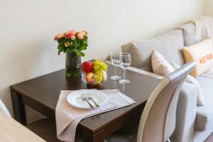 In the kitchen, guests will find a stovetop, a refrigerator, kitchenware and a microwave. This apartment is air-conditioned and features a seating area with a flat-screen TV, a washing machine, soundproof walls, a tea and coffee maker, as well as a dining area. The unit offers 2 beds.