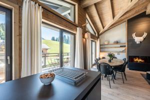 Tento apartmán má 4 ložnice, 3 koupelny, ložní prádlo, ručníky, TV s plochou obrazovkou, jídelní část a kuchyň s kompletním vybavením. Z terasy ubytování ubytování je výhled na hory. Koupelna v Apartment Merbau Les Gets - by EMERALD STAY disponuje sprchou, pračkou, fénem a toaletními potřebami zdarma.
