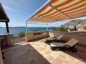 Boasting a private entrance, this air-conditioned apartment comes with 1 living room, 2 separate bedrooms and 1 bathroom with a shower and a hairdryer. Guests will find a stovetop, a refrigerator, kitchenware and a microwave in the well-fitted kitchen. The apartment also includes a barbecue. Featuring a terrace with sea views, this apartment also features a tea and coffee maker and a flat-screen TV with satellite channels. The unit has 2 beds.