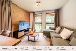 Apartament Apartment Primerose Les Gets - by EMERALD STAY posiada taras, dwie sypialnie, salon z TV, łazienkę z prysznicem oraz kuchnię z lodówką i zmywarką. Z okien obiektu roztacza się widok na miasto. Ręczniki i pościel są dostępne w apartamencie.