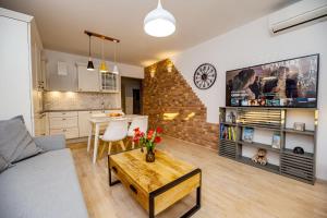 Diese Ferienwohnung mit Klimaanlage besteht aus 2 Schlafzimmern, einem Wohnzimmer, einer voll ausgestatteten Küche mit einem Kühlschrank und einer Kaffeemaschine sowie 1 Badezimmer mit einer Dusche und kostenlosen Pflegeprodukten. In dieser Ferienwohnung werden Handtücher und Bettwäsche zur Verfügung gestellt.