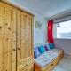 Diese Ferienwohnung ist ausgestattet mit einem Wohnzimmer und einer voll ausgestatteten Küchenzeile mit einem Kühlschrank und einem Ofen. Es gibt einen TV.