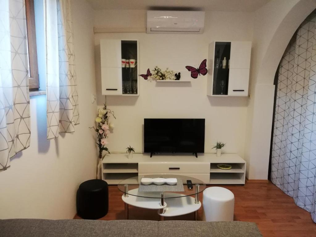 The fireplace is the standout feature of this apartment. Boasting a private entrance, this air-conditioned apartment comes with a kitchen, 2 bedrooms and 1 bathroom with a bath or a shower and a bidet. Guests will find a stovetop, a refrigerator, kitchenware and an oven in the fully equipped kitchen. The apartment also includes a barbecue. Featuring a terrace with garden views, this apartment also features a washing machine and a flat-screen TV with satellite channels. V této ubytovací jednotce se nachází 2 postele.