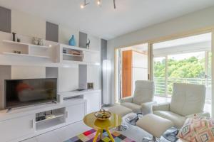 Boasting a private entrance, this air-conditioned apartment includes 1 living room, 1 separate bedroom and 1 bathroom with a bath and a hairdryer. In the well-fitted kitchen, guests will find a stovetop, a refrigerator, kitchenware and an oven. Featuring a terrace with sea views, this apartment also offers a washing machine and a TV with satellite channels. V této ubytovací jednotce se nachází 2 postele.