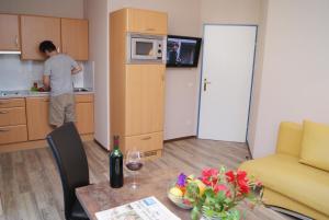 Estos apartamentos independientes ofrecen un balcón con vistas a la montaña. Cuentan con TV por cable, sala de estar con sofá, baño privado con ducha y una cocina completamente equipada con lavaplatos y mesa de comedor.