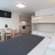 At the apartment complex, each unit includes a wardrobe, a flat-screen TV, a private bathroom, bed linen and towels.