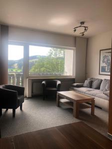The 1-bedroom apartment is equipped with a living room with a flat-screen TV, a fully equipped kitchen with a microwave and a toaster, and 1 bathroom with a hair dryer. App mit Seeblick am Hillebachsee in Winterberg OT includes a balcony designed for outdoor dining.