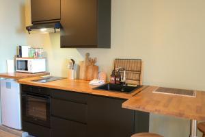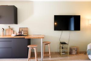 W apartamencie z 1 sypialnią zapewniono bezpłatne Wi-Fi, telewizor z dostępem do kanałów satelitarnych, pralkę oraz kuchnię z lodówką i mikrofalówką. Ręczniki i pościel są dostępne w apartamencie Appart' les pieds dans l'eau.