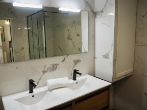 Apartmán Appart T2 cabine 5 min du centre zahrnuje 1 ložnici, 1 koupelnu, ložní prádlo, ručníky, TV s plochou obrazovkou, jídelní kout a plně vybavenou kuchyň. Ubytování Appart T2 cabine 5 min du centre nabízí také terasu s výhledem do zahrady. Koupelna je vybavená sprchou.