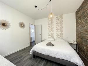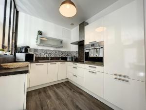 En Appart T3 LE PATIO - avec terrasse, el apartamento dispone de dos dormitorios, zona de estar con TV de pantalla plana, baño con ducha y cocina equipada con horno y nevera. El apartamento Appart T3 LE PATIO - avec terrasse dispone de toallas y ropa de cama.