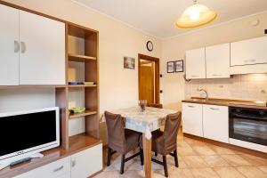 Apartament oferuje sypialnię, łazienkę, kuchnię oraz pościel i ręczniki. Goście Appartamento Greta Baita Mauri mają do dyspozycji telewizor satelitarny oraz balkon z widokiem na góry.