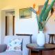Featuring a private entrance, this holiday home is comprised of 1 living room, 2 separate bedrooms and 1 bathroom with a shower and a bidet. In the kitchen, guests will find a stovetop, a refrigerator, a dishwasher and kitchenware. The holiday home features tiled floors, a seating area with a flat-screen TV, a washing machine, a coffee machine as well as garden views. The unit offers 3 beds.