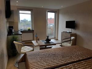 Zimmer: 1The apartment offers a washing machine, a coffee machine, as well as a private bathroom boasting a shower and a hairdryer. The apartment's kitchenette, which has a refrigerator and a toaster, is available for cooking and storing food. This apartment provides heating and a TV with cable channels.