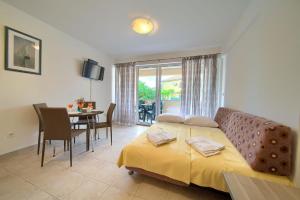 The apartment offers heating, as well as a private bathroom featuring a shower. Guests can make meals in the kitchenette that comes with a refrigerator, a dishwasher and a microwave. This apartment is air-conditioned and features a TV with satellite channels, a washing machine, a coffee machine and a barbecue.