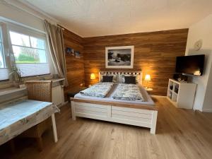 Apartmán Appartement 1 mit Küche und neuem Bad, frisch saniert zahrnuje 1 ložnici, plně vybavenou kuchyň s lednicí a troubou a 1 koupelnu se sprchou. V apartmánu ubytování najdete TV s plochou obrazovkou a koupelnu s fénem.