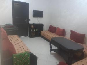Apartament z 2 sypialniami w Appartement à Mohammedia mieści salon z telewizorem oraz w pełni wyposażoną kuchnię.