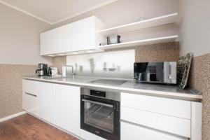 El apartamento tiene 1 dormitorio, una zona de cocina con nevera y lavavajillas, y 1 baño con ducha, secador de pelo y lavadora. El alojamiento Appartement Am Kurpark puede facilitar toallas y ropa de cama por un cargo adicional.