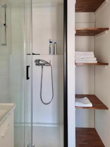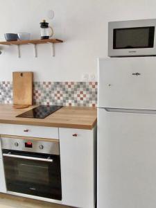 Diese Ferienwohnung ist versehen mit 1 Schlafzimmer, einer Küche mit einem Kühlschrank und einem Ofen, einem TV, einem Sitzbereich und 1 Badezimmer, ausgestattet mit einer Dusche.