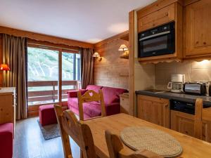 Apartmán v ubytování zahrnuje 1 ložnici, 1 koupelnu, obývací pokoj s TV a plně vybavenou kuchyň s jídelním koutem a lednicí. Koupelna v ubytování Appartement cosy, au pied des pistes à Méribel - FR-1-355-104 je zařízena vanou a fénem.