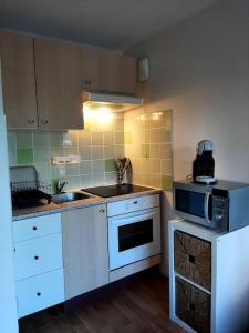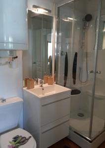 Appartement cosy proche mer include 1 camera da letto, soggiorno, bagno con doccia e phon, e angolo cottura con frigo e macchina da caffè. Lenzuola e asciugamani sono a vostra disposizione presso Appartement cosy proche mer.