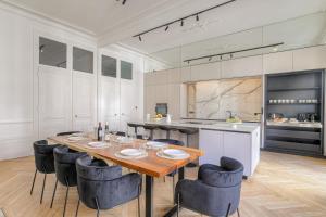 Questo appartamento comprende 5 camere da letto, un soggiorno, una cucina con utensili, frigorifero e macchina da caffè, e 3 bagni con doccia e set di cortesia. Appartement d'exception Lyon 6e fornisce lenzuola e asciugamani ai propri ospiti.