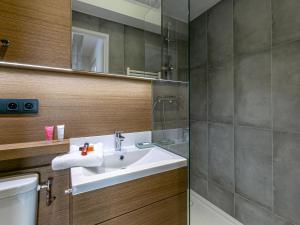 Ten jednosypialniany apartament w obiekcie obejmuje salon z telewizorem, łazienkę z suszarką oraz kuchnię z lodówką i zmywarką.