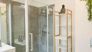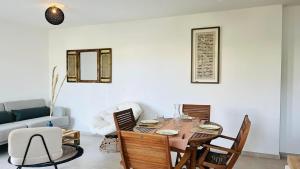 Klimatizovaný apartmán v Appartement ELISA Calvi má 1 ložnici, obývací prostor, 1 koupelnu a kuchyňský kout s myčkou a lednicí. Apartmán má také koupelnu.