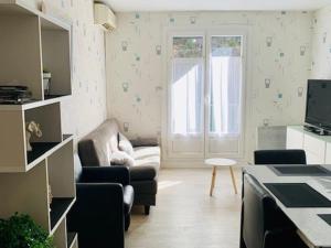 L'appartamento di Appartement F3 rénové, 2 à 6 pers, clim, wifi, garage fermé, animaux OK, Amélie-les-Bains - FR-1-703-31 offre 2 camere da letto, TV, cucina con lavastoviglie, lavatrice e bagno con doccia.