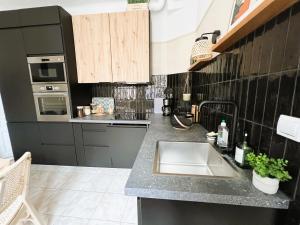 The 1-bedroom apartment at Appartement La Goelette includes a living room with a flat-screen TV, a fully equipped kitchen, and 1 bathroom. The property offers garden views.