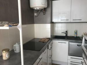 La distribución de Appartement T2 Arcachon centre, commerces et plage à pied incluye 1 dormitorio, sala de estar, cocina completa con nevera y cafetera, y baño con ducha. El alojamiento Appartement T2 Arcachon centre, commerces et plage à pied está equipado con TV de pantalla plana.