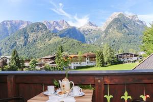 This apartment comes with a balcony with mountain views, wooden floors, a living room with a kitchenette, a seating area with sofa bed and a bathroom with shower and toilet. The second bedroom is located outside of the apartment, directly adjacent to it and reachable via the hallway.