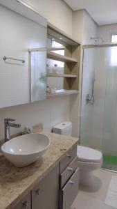 L'unità climatizzata di Apto a uma quadra do mar em torres include 3 camere da letto, soggiorno, 2 bagni con doccia e phon, e cucina con frigo e macchina da caffè. Presso Apto a uma quadra do mar em torres la dotazione include lenzuola e asciugamani.