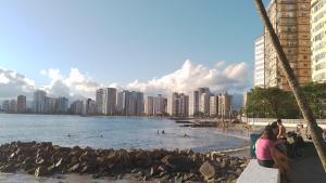 Questo appartamento con balcone e vista sulla città offre 1 camera da letto, un soggiorno, una TV a schermo piatto, una cucina con frigorifero e forno e 1 bagno con doccia. Per una maggiore comodità, Apto acochegante com Praia e lazer può fornire asciugamani e lenzuola a un costo aggiuntivo.
