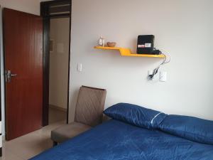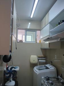 Apto Aconchegante consists of 1 bedroom, a fully equipped kitchen, and 1 bathroom.