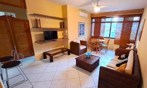 Klimatizovaný apartmán Apto Com Ar Condicionado - Enseada tvoří 2 ložnice, obývací pokoj, plně vybavená kuchyň s lednicí a troubou a 2 koupelny. Koupelna je vybavená sprchou.