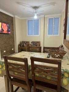 Oferta apartamentu obejmuje kilka sypialni (2), kilka łazienek (2), kuchnię z jadalnią oraz pełnym wyposażeniem, w tym lodówką, a także salon z telewizorem z płaskim ekranem.