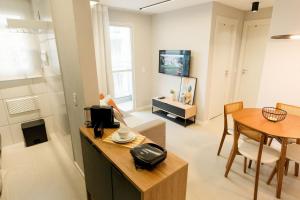 El apartamento en Nuevo Depto 2 Hab | Cerca Terminal Novo Rio incluye dos dormitorios, zona de estar con TV de pantalla plana, baño con ducha y cocina con horno y nevera. El apartamento Nuevo Depto 2 Hab | Cerca Terminal Novo Rio dispone de toallas y ropa de cama.