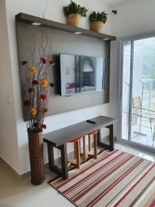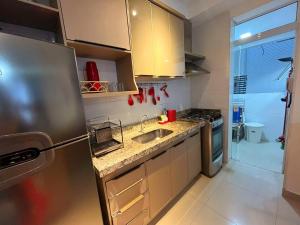 Klimatizovaný apartmán Apto Praia das Toninhas tvoří 2 ložnice, obývací pokoj, plně vybavená kuchyň s lednicí a troubou a 2 koupelny. Koupelna je vybavená sprchou.