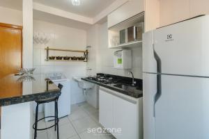 The apartment is fitted with 1 bedroom, a fully equipped kitchen with a microwave and a fridge, a washing machine, and 1 bathroom with a hair dryer and free toiletries. Towels and bed linen are offered at Apto 1Q c/ Ar e Self Check-in, Goiânia - ATE0302.