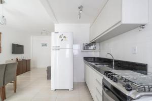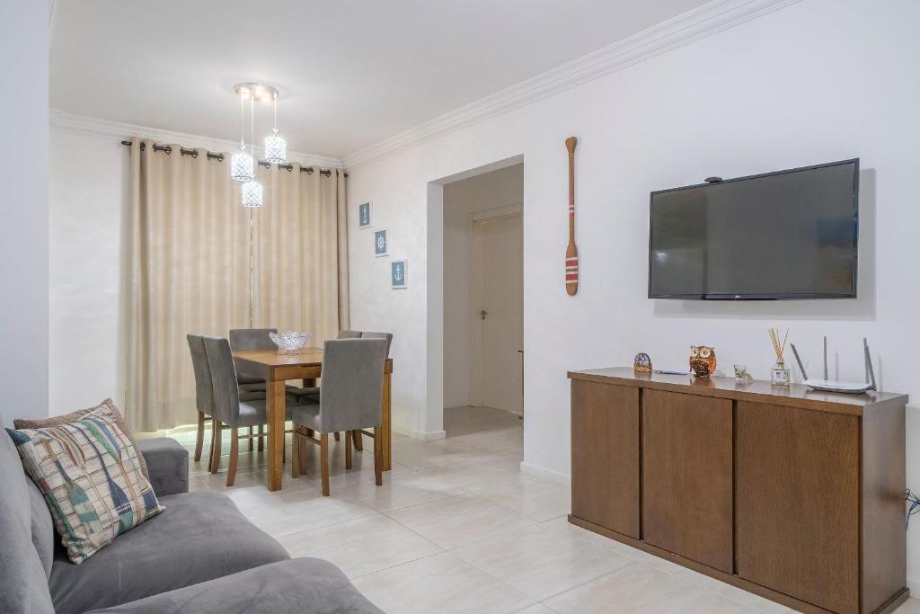 Klimatizovaný apartmán ubytování tvoří 2 ložnice, obývací pokoj, plně vybavená kuchyň s lednicí a troubou a 2 koupelny. Koupelna v ubytování zahrnuje sprchu a toaletní potřeby zdarma. V ubytování Apto 2Q c/ churrasq. no centro - Bombinhas CAA103 jsou pro hosty připraveny ručníky a ložní prádlo.