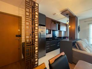 Apto 407 Torre 4 Vila II cuenta con 1 dormitorio, sala de estar, TV de pantalla plana, cocina con nevera y horno, y baño con ducha. El apartamento el alojamiento dispone de toallas y ropa de cama.