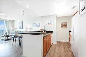 Das klimatisierte Aqua 404 umfasst zwei separate Schlafzimmer, ein Wohnzimmer, eine voll ausgestattete Küche mit Kühlschrank und Geschirrspüler sowie zwei Badezimmer. Es gibt einen TV.