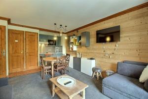 El apartamento cuenta con balcón y vistas a la montaña, y dispone de 1 dormitorio, una sala de estar, TV de pantalla plana, una cocina equipada con nevera y lavavajillas, y 1 baño con bañera. El apartamento ARC 1950 - Appartement 5 personnes - ski aux pieds - Sauna, Hammam, Jacuzzi dispone de toallas y ropa de cama.