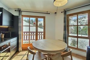 Apartmán ARC 1950, Appartement 2 chambres, 6 personnes, Exposition Sud, SAUNA, HAMMAM, JACUZZI, PISCINE poskytuje 2 ložnice, 2 koupelny, ložní prádlo, ručníky, satelitní TV s plochou obrazovkou, jídelní kout a plně vybavenou kuchyň. Z terasy ubytování ubytování je výhled na hory. Koupelna v ARC 1950, Appartement 2 chambres, 6 personnes, Exposition Sud, SAUNA, HAMMAM, JACUZZI, PISCINE je vybavena sprchou, fénem, pantoflemi a toaletními potřebami zdarma.