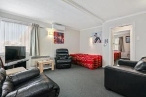 Pokoje: 11This spacious suite features 1 double and 3 single beds with electric blankets, private bathroom and hairdryer. Full kitchen facilities feature cutlery, crockery, pots, microwave, refrigerator, electric jug, toaster and complimentary tea/coffee with fresh milk. The separate lounge offers a Sofa, Armchairs, smart TV and Dining Table.